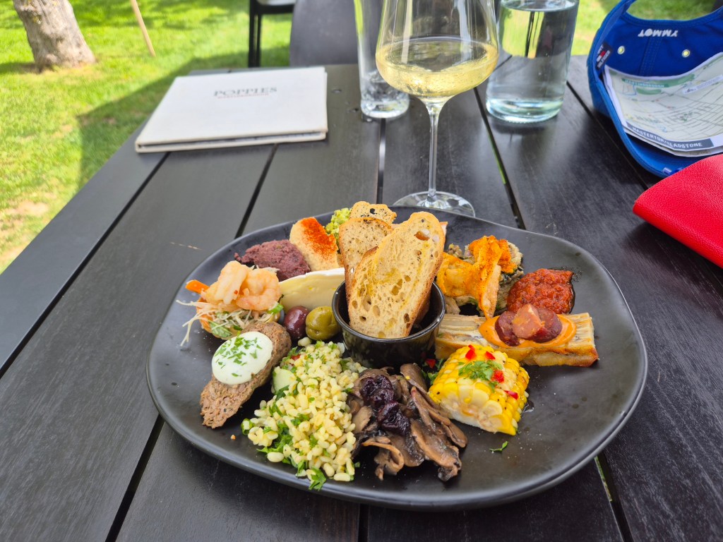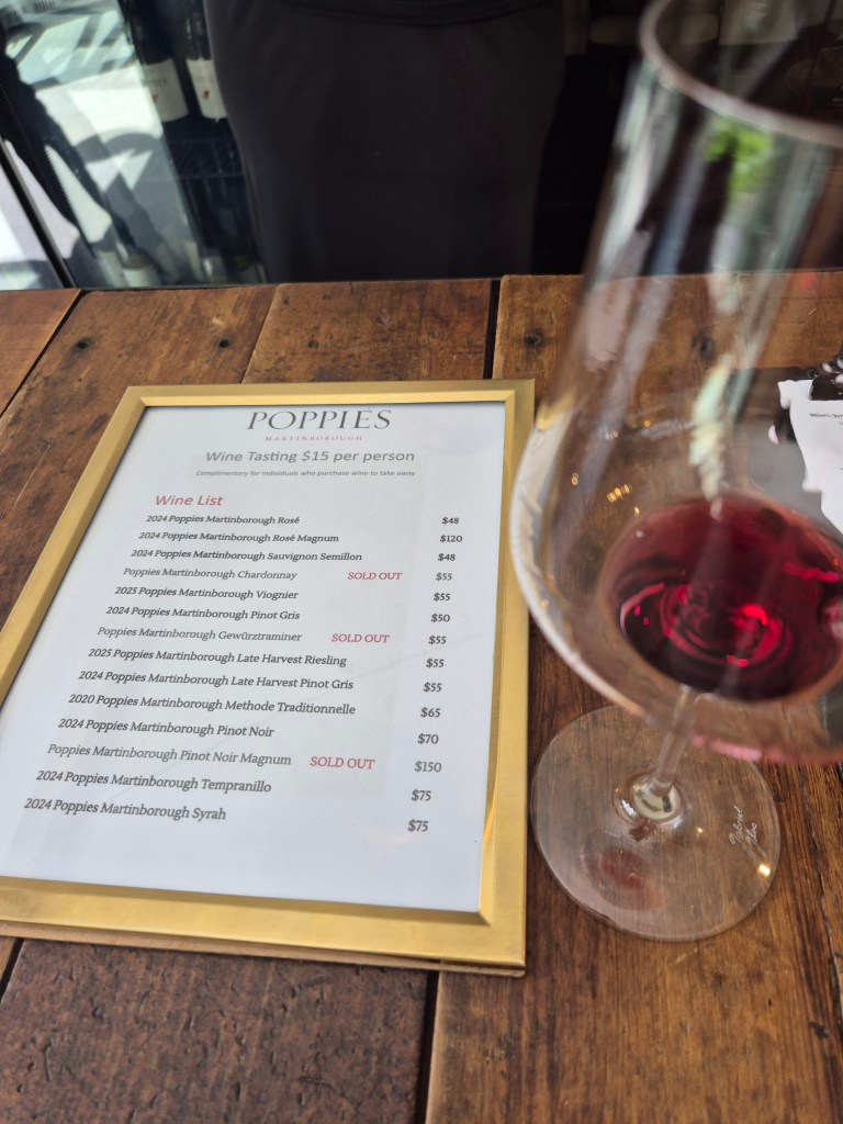 Wenig später bin ich bei „Poppies“, mir werden für $15 (7,50€) 5-6 Weine vorgesetzt, die ich amtlich wegdegustiere. Danach gibt es sehr gutes Essen!
