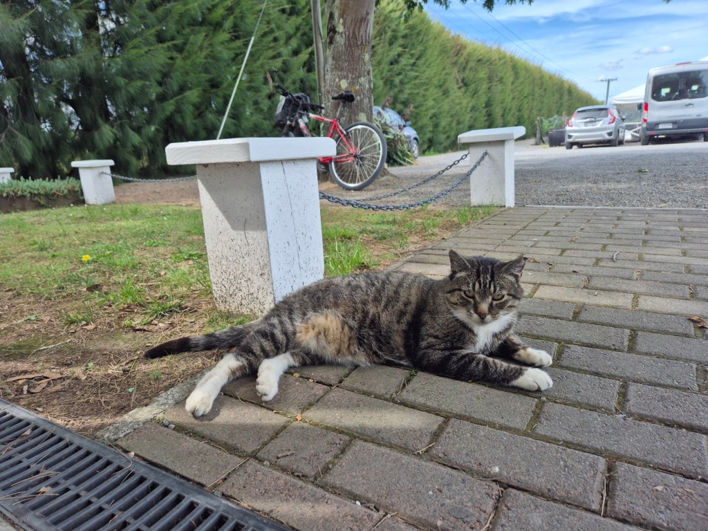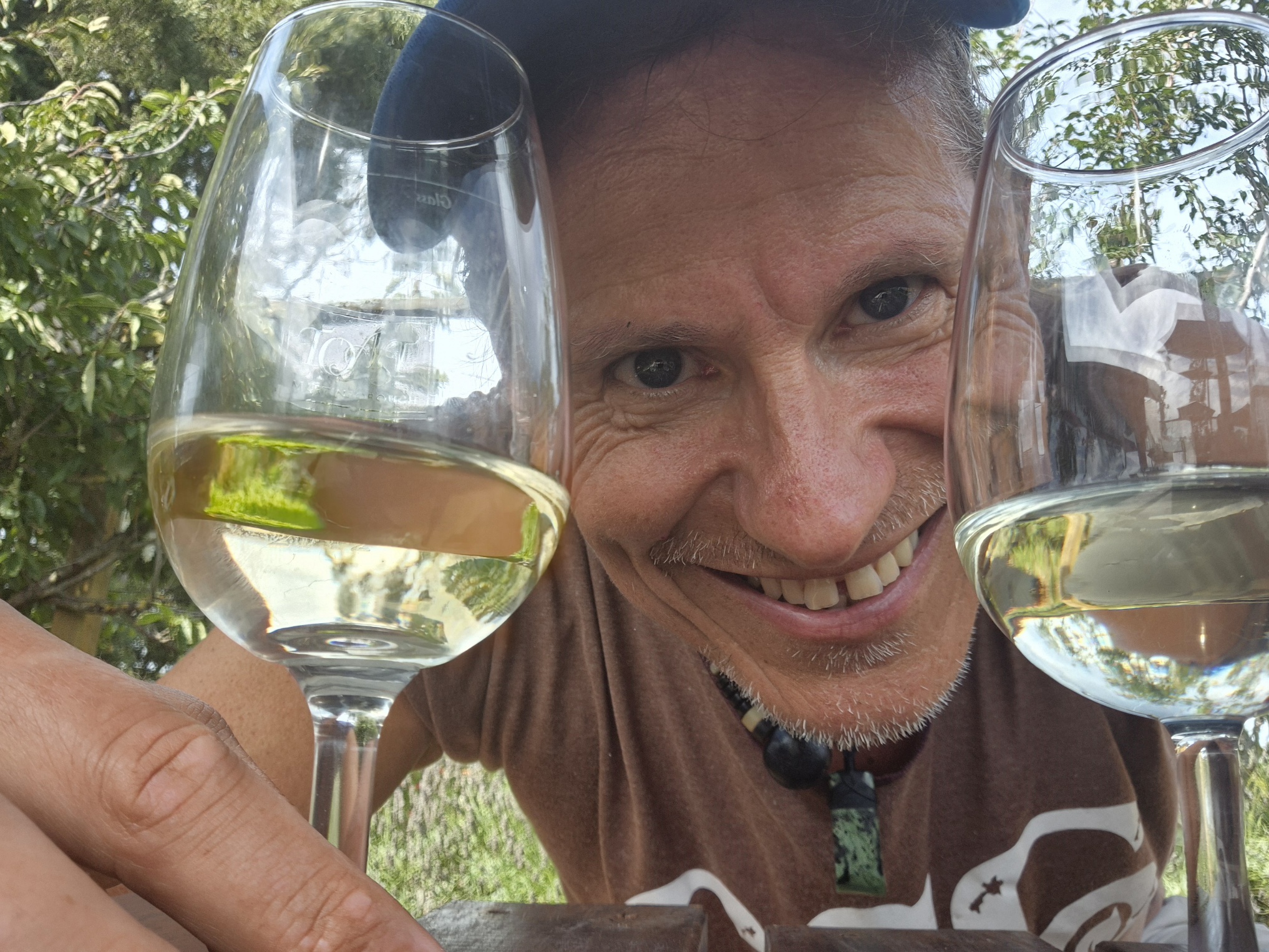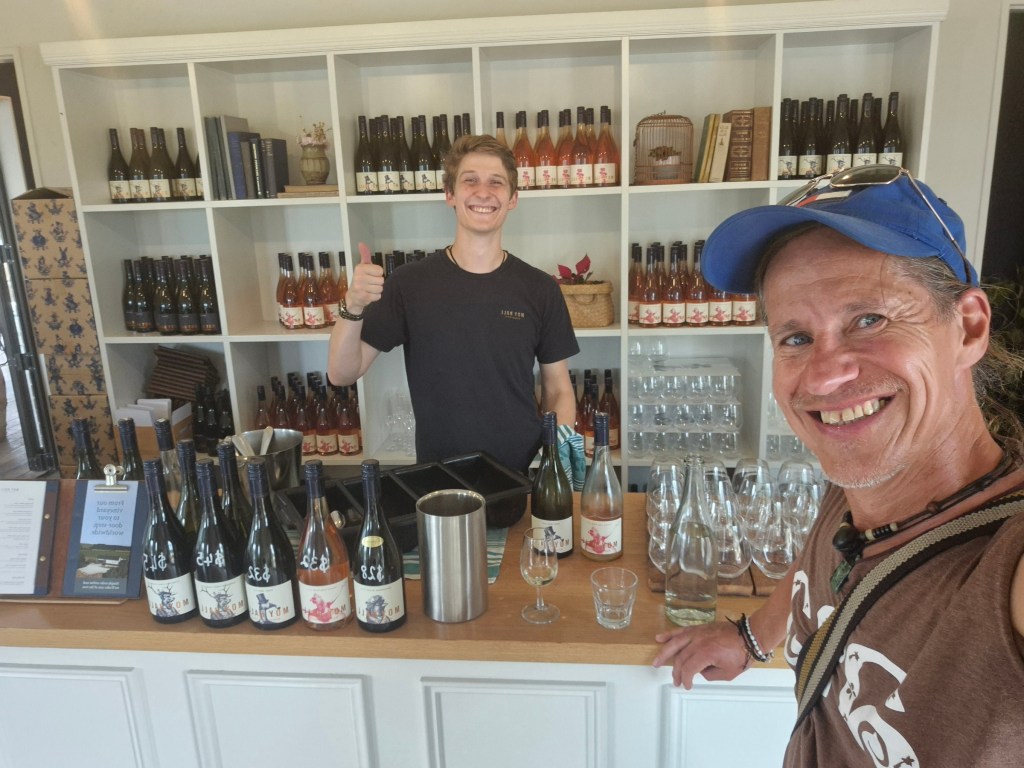 Danach, ich bin spät dran. „Zu viel Wäsche, zu wenig Wein!“ sagt der Volksmund, hurtig zum Moy Hall Vineyard. Dort wird bereits aufgestuhlt, aber der Manager in Charge Bas Muller (holländische Eltern) verabreicht mir ein individuelles Tasting im Stehen an der Theke, für lächerliche $10, mit sehr nettem persönlichen Smalltalk. Hinter mir wird schon gefegt. Also schnell weiter, es wird sportlich, zum Glück ist es nicht weit und ich erreiche „Tirohana Estate“, wo eine große getigerte Katze und die nächsten fünf Weine auf mich warten. Auch hier bin ich der einzige (letzte) Gast, um den sich sehr bemüht wird (10$). Ein letztes Vineyard hat noch geöffnet: „Haythornthwaite Wines“. Ich weiß nicht, ob ich bedürftig oder durstig aussehen. Aber die Gläser werden reichlich gefüllt und so fühle auch mich allmählich!