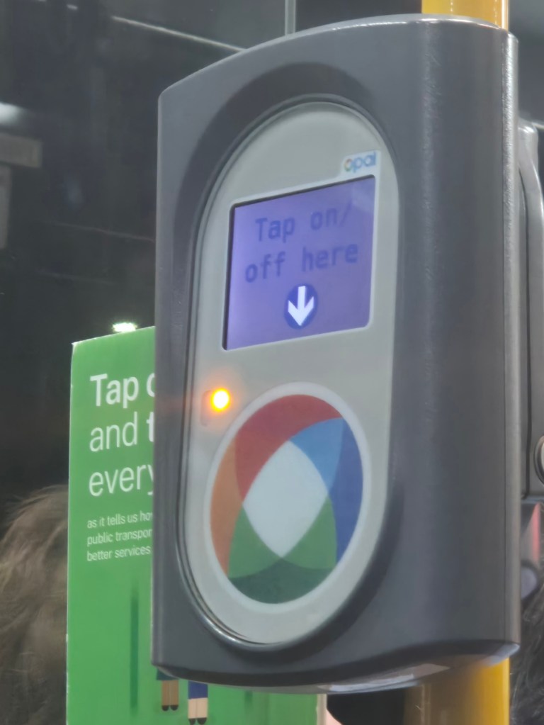 Ich habe genau Null australische Dollar in der Tasche, laufe aber trotzdem direkt zur U-Bahn-Station, halte mein Handy ans Lesegerät, die Tore des kleines Gates vor mir flappen auseinander und ich gehe zu meinem Gleis. Die Bahn fährt mich in die City und dort checke ich beim Aussteigen mit dem Handy wieder aus. Fertig! Kein Tarifdschungel. Keine langen, verzweifelten Gesichter am Fahrkartenautomaten.
