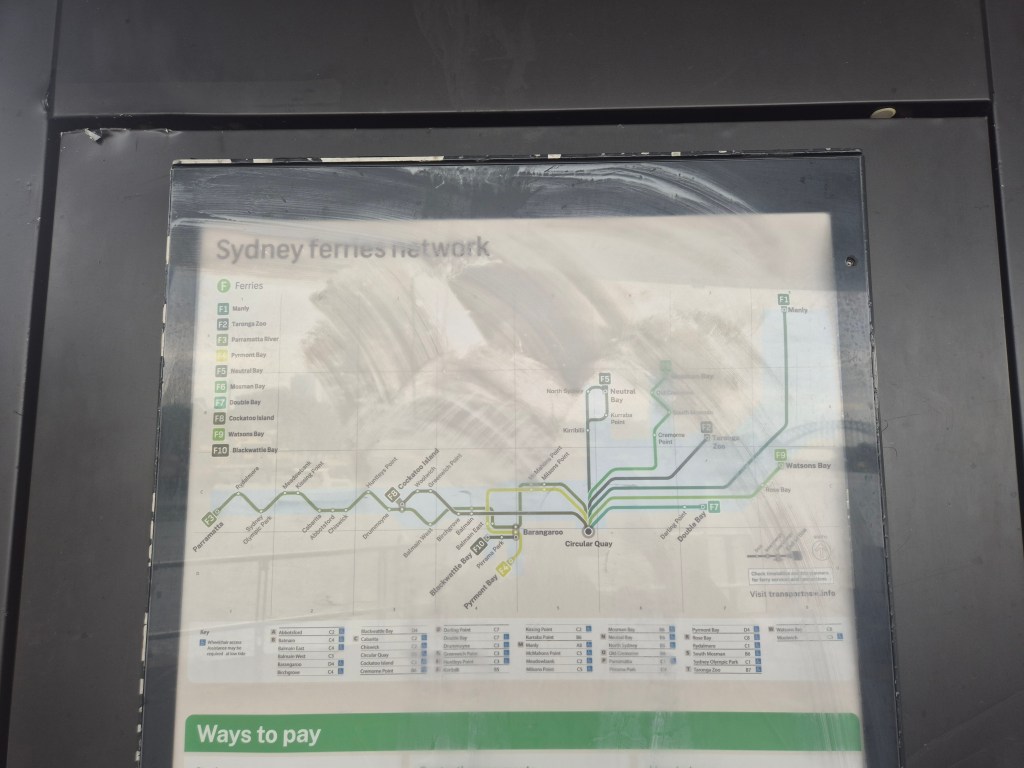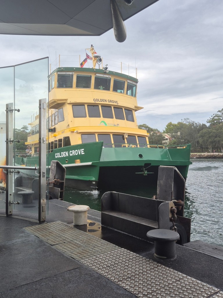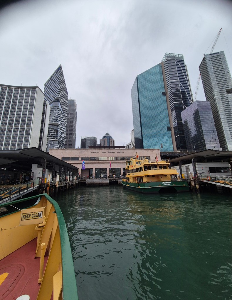 Ich könnte mich ja noch weiter aufregen. Aber da kommt gerade mein nächster ÖPNV: eine Fähre, die mich für 1A$ (0,6€) zum Circular Quay bringt, also genau ins Herz von Sydney. Nice!