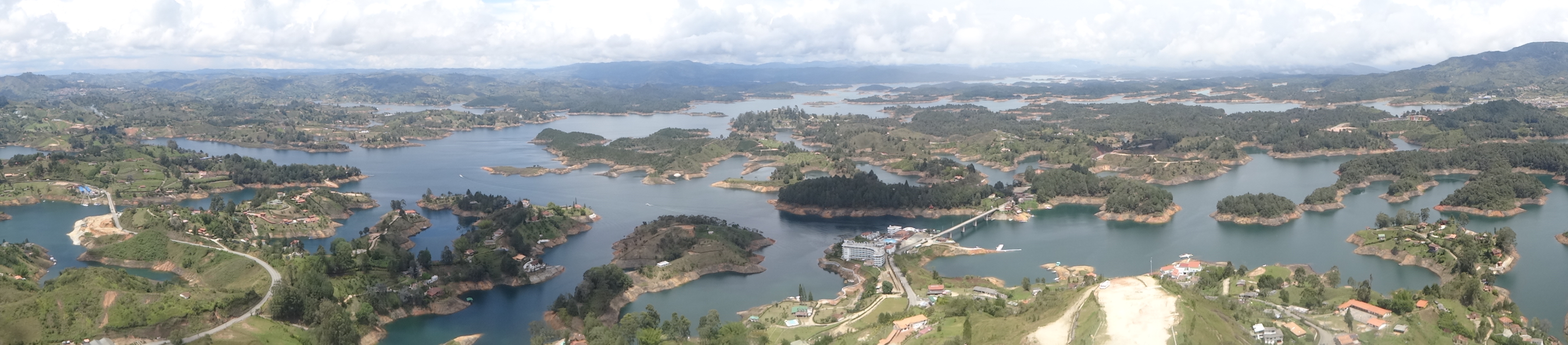Der Stausee Peñol-Guatapé ist nicht nur einzigartig und wunderschön (sieht aus wie eine Binnenschärenküste), sondern er erzeugt auch mehr als 60% des kolumbianischen Stroms. Gut dafür mussten in den 1970er Jahren ca. 5000 Menschen umgesiedelt werden. Aber es hat sich neben der Stromerzeugung ein riesiges Freizeitgebiet für den Großraum Medellín entwickelt mit Wassersportangeboten und dem wunderschön-kitschig aufgemotzten Städtchen Guatapé. Jedes Wochenende ist hier die Hölle los.