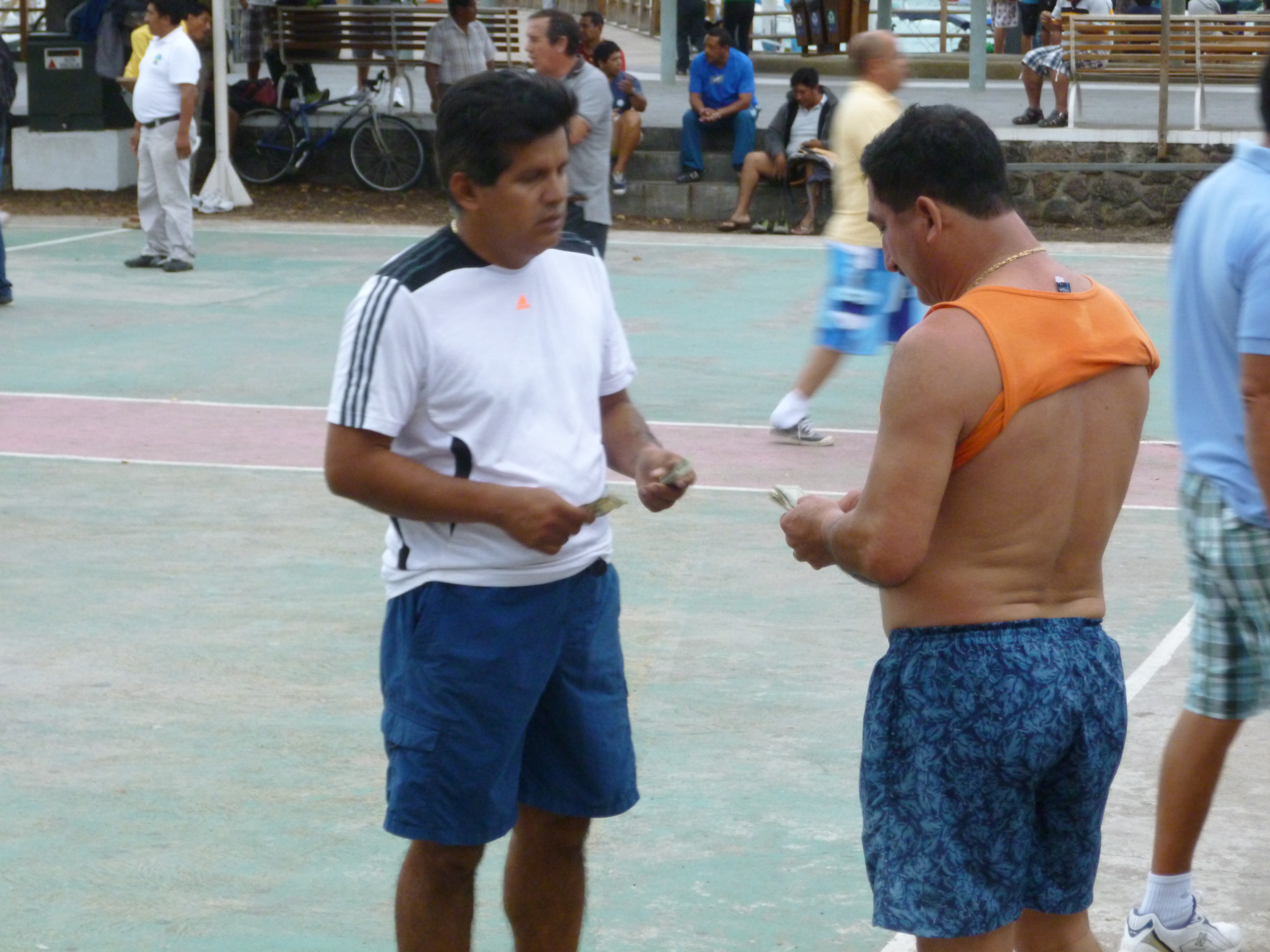 Das Ganze machte auf mich den Eindruck eines Turniers. Um die Felder herum beobachteten etliche Zuschauer die Spiele und auf den Plätzen ging es engagiert und sehr emotional zu. Im Anschluss an die Spiele jedoch konnte ich beobachten, wie der Schiedsrichter zur Siegermannschaft ging und einen Stapel Geldscheine überreichte. Und dabei wurden 20-Dollarscheine – im entschiedenen Plural (!) – ausgeteilt (Fotobeweis!). Am kommenden Tag fragte ich nach meinem Tauchgang den einheimischen Taxifahrer, was es denn damit auf sich hätte. Ja, tatsächlich würde dort an jedem Wochenende um Geld gespielt sowie natürlich von den Zuschauern gewettet, und dabei ginge es durchaus um einige 100 Dollar pro Spiel!