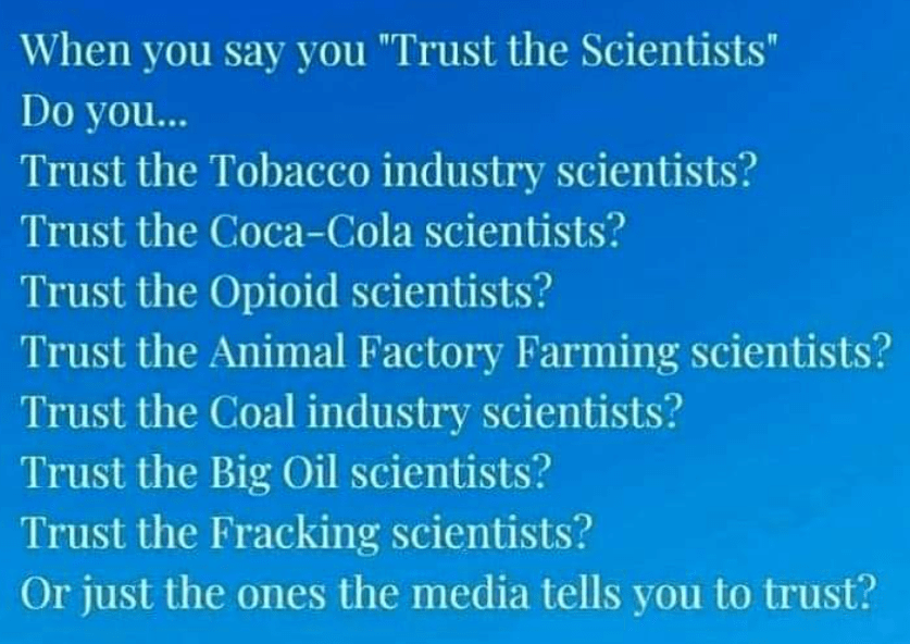 Neulich habe ich diesen Post gelesen: „97% of Scientists agree with Whoever is Funding Them!“ und mein erster Reflex war, dem direkt zuzustimmen. Denn sofort kam mir der Spruch in den Sinn „Wes Brot ich ess, des Lied ich sing!“ – Und vielleicht denkt man auch an die Wissenschaftler:innen, die im Dienste der Tabakindustrie tätig waren und die Kohle- und Ölinteressen unterstützen…