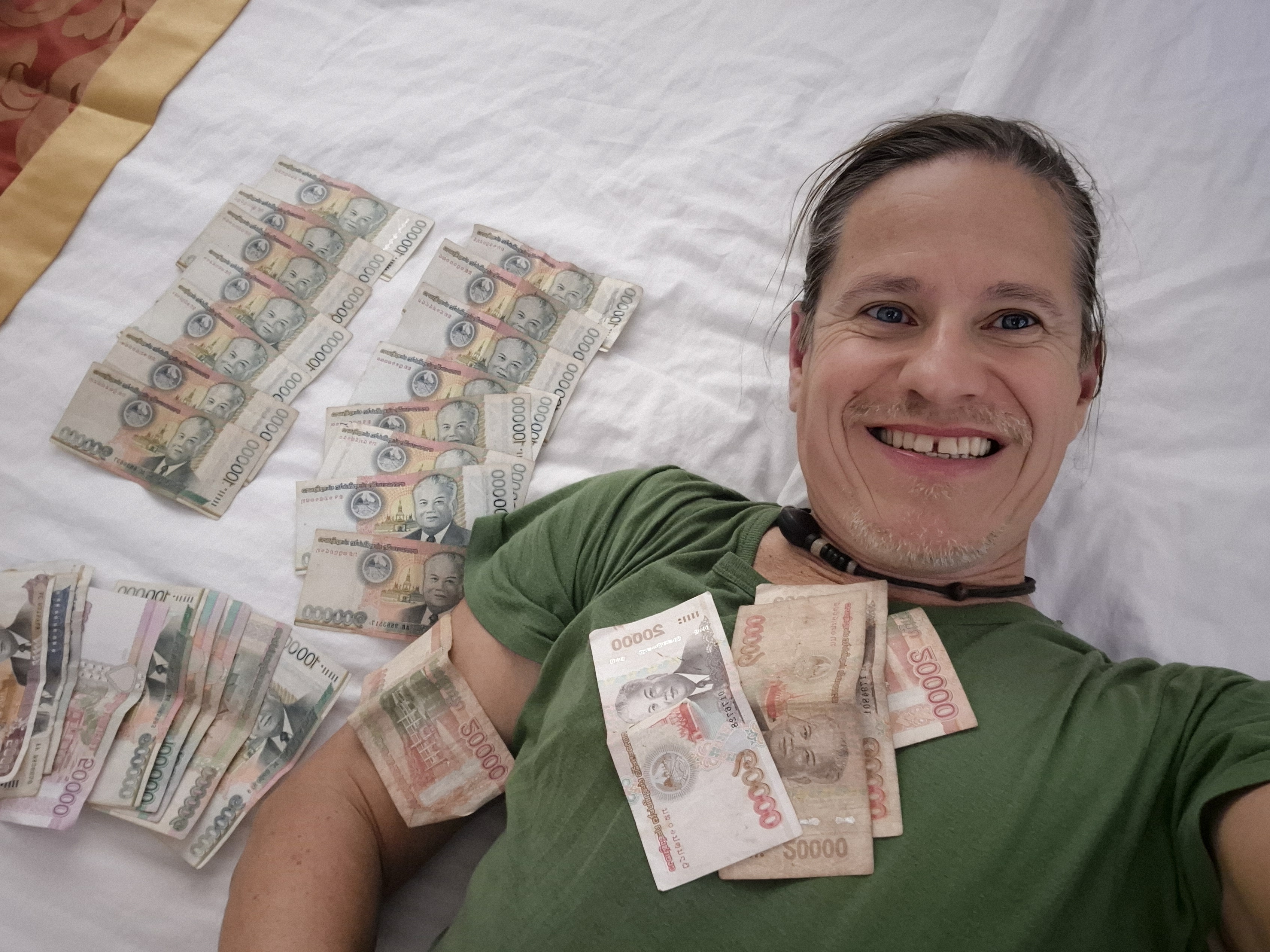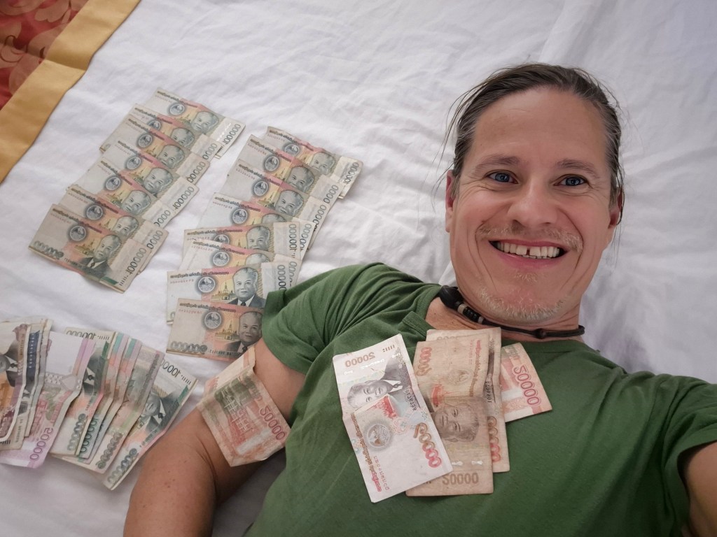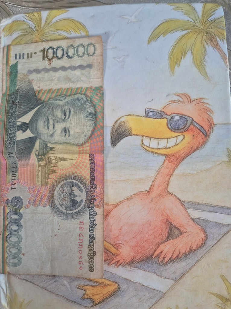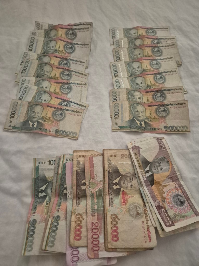 Nachschlag: Tatsächlich ist der laotische Kip keine richtige erwachsene Währung. Wikipedia erklärt mir, dass der Kip nicht frei konvertierbar ist und nicht an internationalen Märkten gehandelt wird, nicht einmal an 30 Kilometer entfernten Märkten.