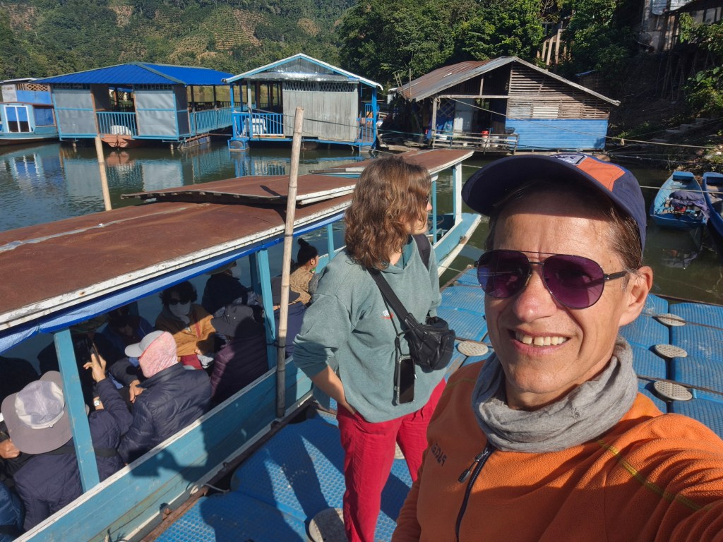 Am Anleger ist dann jedoch mehr geboten, als man von Laotern und auch Laoterinnen erwartet. Eine 14köpfige asiatische Reisegruppe belegt bereits einen Großteil des Bootes und es warten noch einige weitere Passagiere am Steg. Der normale Menschenverstand, der im übrigen auch in Laos nichts zu sagen hat, zählt kurz durch, wägt ab und erkennt, das Boot ist voll, wir brauchen ein zweites (davon liegen übrigens noch ein paar in Reichweite herum).