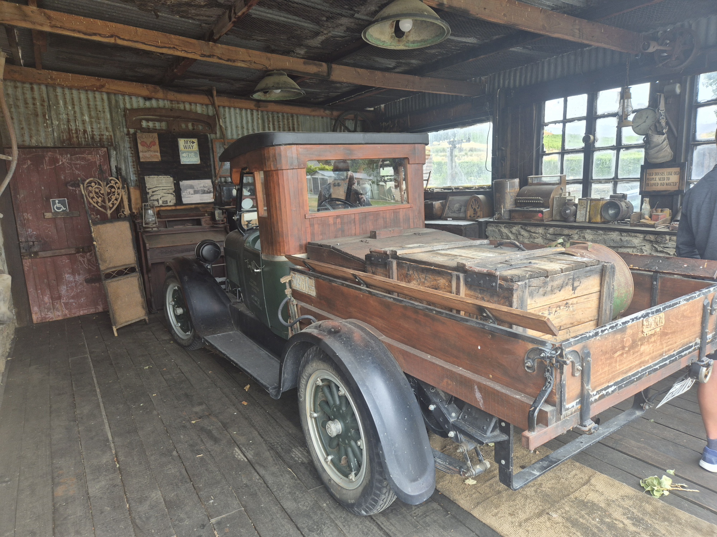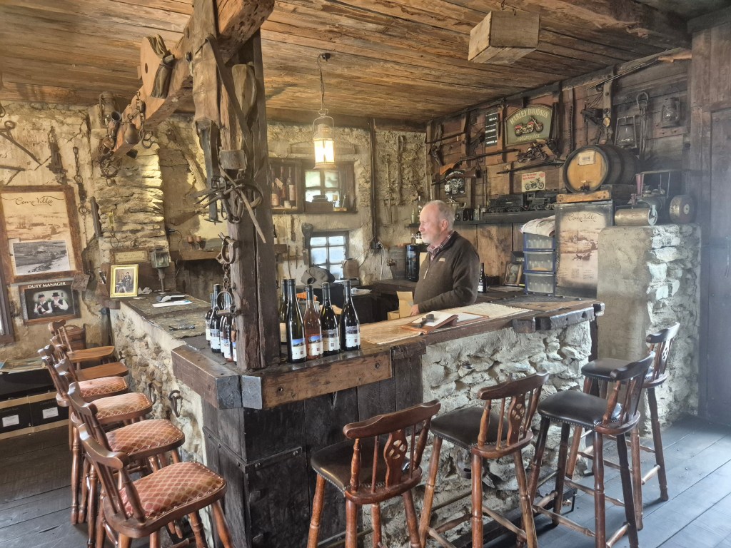 Als ich um 3pm ankomme, wirkt der Ort verlassen. Ein anderes Wohnmobil steht einsam herum. Das dazugehörige Pärchen hat schon das alte, oder besser, antike Gebäude gefunden, wo das Tasting stattfinden soll. Aber auch doch ist niemand. Wir kommen ins Gespräch, sehr nettes Pärchen aus Kiel, bereits zum dritten Mal in Neuseeland. Ganz selbstverständlich driftet mein Sprachstil in einen gemütlichen norddeutschen Singsang. Ein bisschen Heimat streift mein Gemüt.