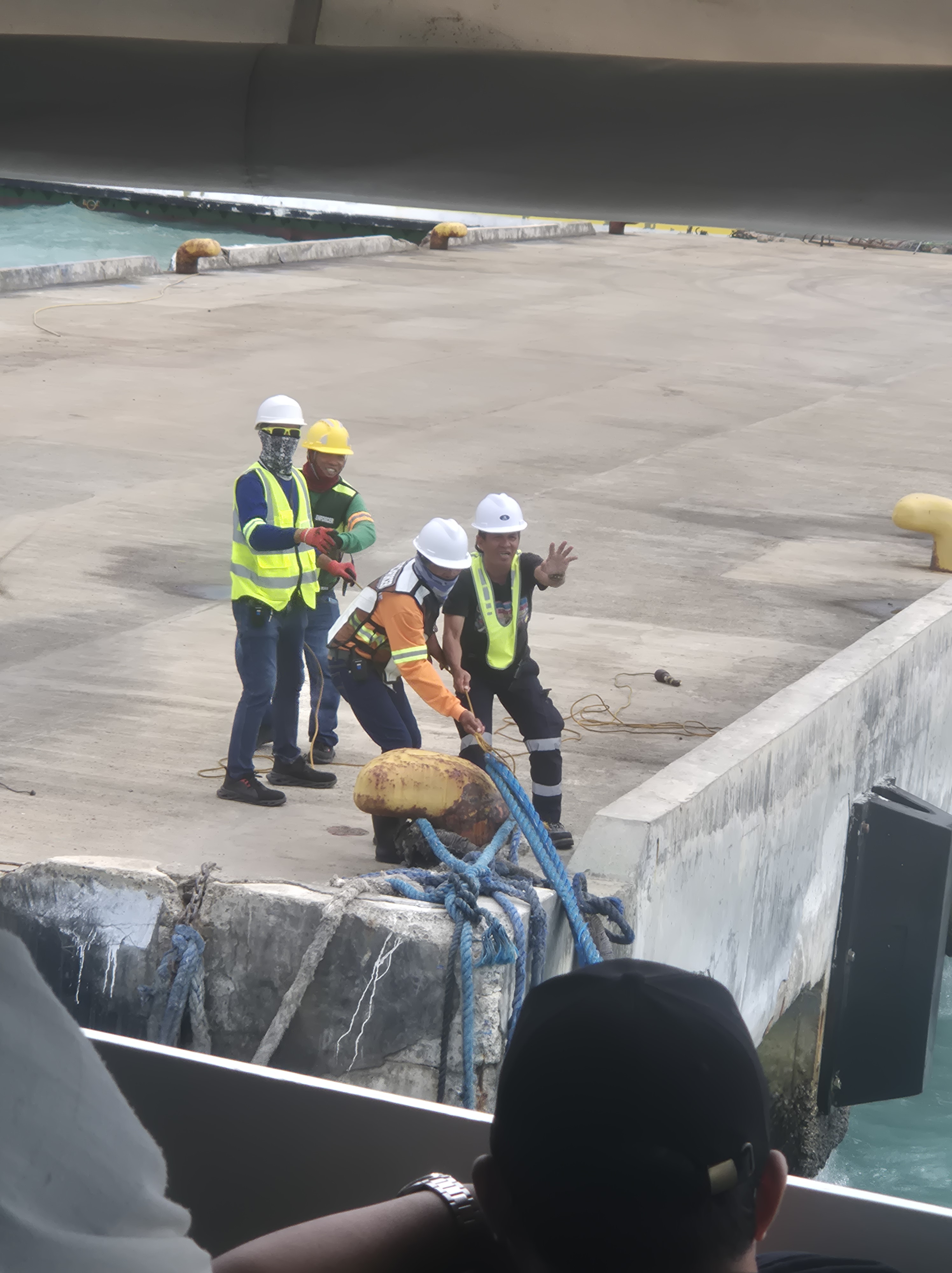 Tatsächlich ist das Meer durchaus unruhig, was sich insbesondere beim Anlegemanöver in Siquijor als durchaus knifflig erweist. Denn die ersten drei Versuche, dass Boot am Kai festzumachen, schlagen fehl. Zwischendurch stehen wir quer zu Wellen, was die Fähre mächtig ins Krängen (seemännisch für seitliches Neigen) bringt. Uiuiui!! Wir müssen uns in unruhiger See eine Dreiviertelstunde lang durchschaukeln lassen, bis ein anderer, besser anzusteuernder Anlegeplatz frei wird. Auch dieses Manöver ist atemberaubend, aber gelingt. Die Fähre wird ent- und beladen, bevor es weiter nach Dumaguete geht. Da die See ruppig bleibt, wird auch das dortige Anlegemanöver eine Herausforderung. Wie ich später erfahre, wird nach unserer Landung der Fährbetrieb von der Küstenwache aus Sicherheitsgründen eingestellt. Einige sehr blasse Gesichter verlassen die Fähre, eine Frau erleidet auf dem wackeligen Steg zum Festland einen Kreislaufzusammenbruch. Puhhh!