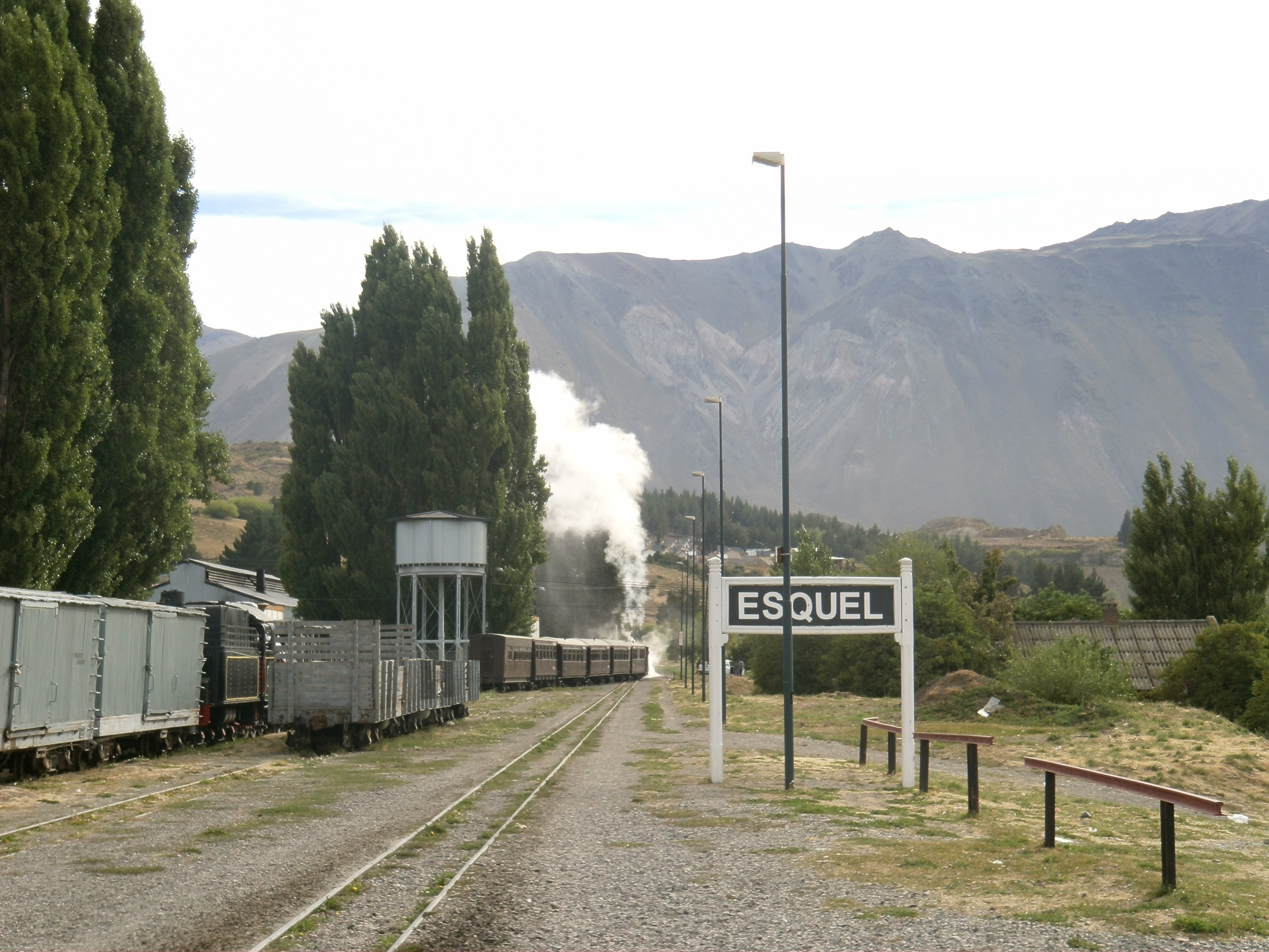 Morgens im Hotel nach sehr feinem Frühstück, was nun wahrlich keine argentinische Kernkompetenz ist, wurde plötzlich aufs Tempo gedrückt. Denn wir wollten uns vor der Weiterfahrt noch „La Trochita“ anschauen. Das ist eine alte Schmalspurdampflok, die zu touristischen Zwecken durch Patagonien zuckelte und jeden Morgen um 10:00 den „Bahnhof“ verließ. Es war schon kurz vor 10, als wir losfuhren. Mauricio beeilte sich und ließ uns beiden anderen am Eingang rausspringen. Ich verstand die Hektik nicht so ganz, aber eilte Federico hinterher. Da hörten wir aber auch schon das pfeifende Dampfablassen der Bahn. Wir verfielen in den Laufschritt und joggten neben den Waggons her, um zur Lok zu gelangen.