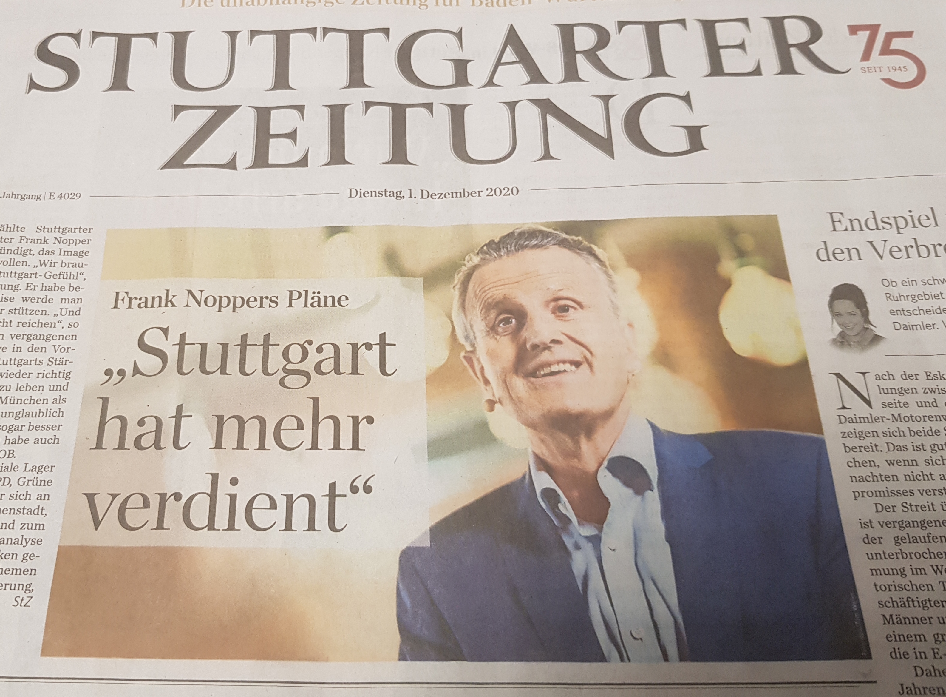Nachdem ich mich gerade noch über die Stuttgarter Zeitung wegen ihrer Berichterstattung über die Stuttgarter OB-Wahl aufgeregt habe, überrascht mich die Zeitung mit plötzlicher Klarheit. Sie bildet den neuen Oberbürgermeister groß auf der ersten Seite ab und titelt ganz in meinem Sinn: „Stuttgart hat mehr verdient!“ Bravo, Stuttgarter Zeitung! Auf den Punkt gebracht!