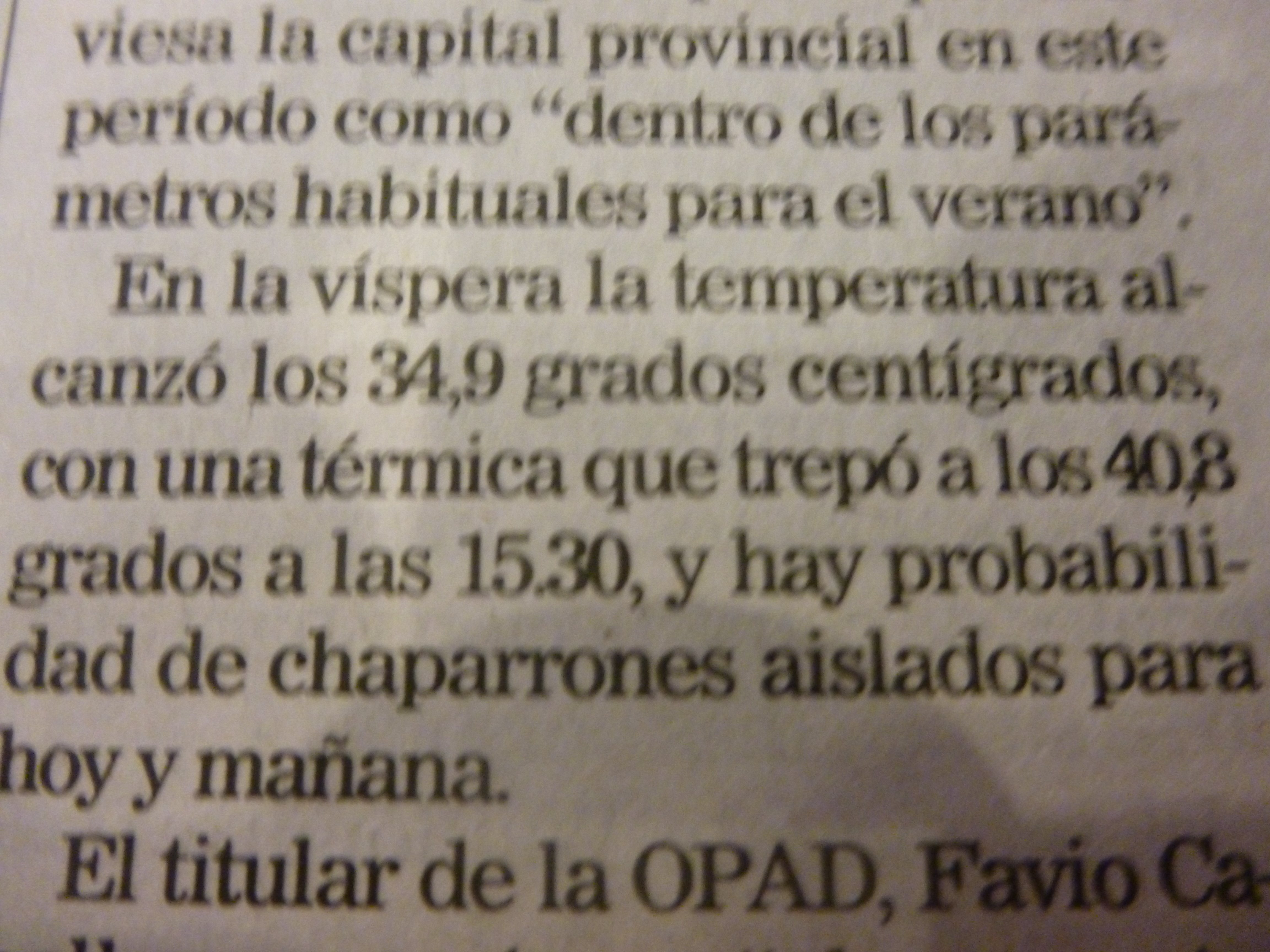 Aber es ist nicht so, als würde das nicht normal sein. Die Zeitung in Posadas meinte, dass würde sich für die Jahreszeit in den „normalen Parametern“ bewegen. Und die meinen damit 40,8°C! (siehe Foto)!