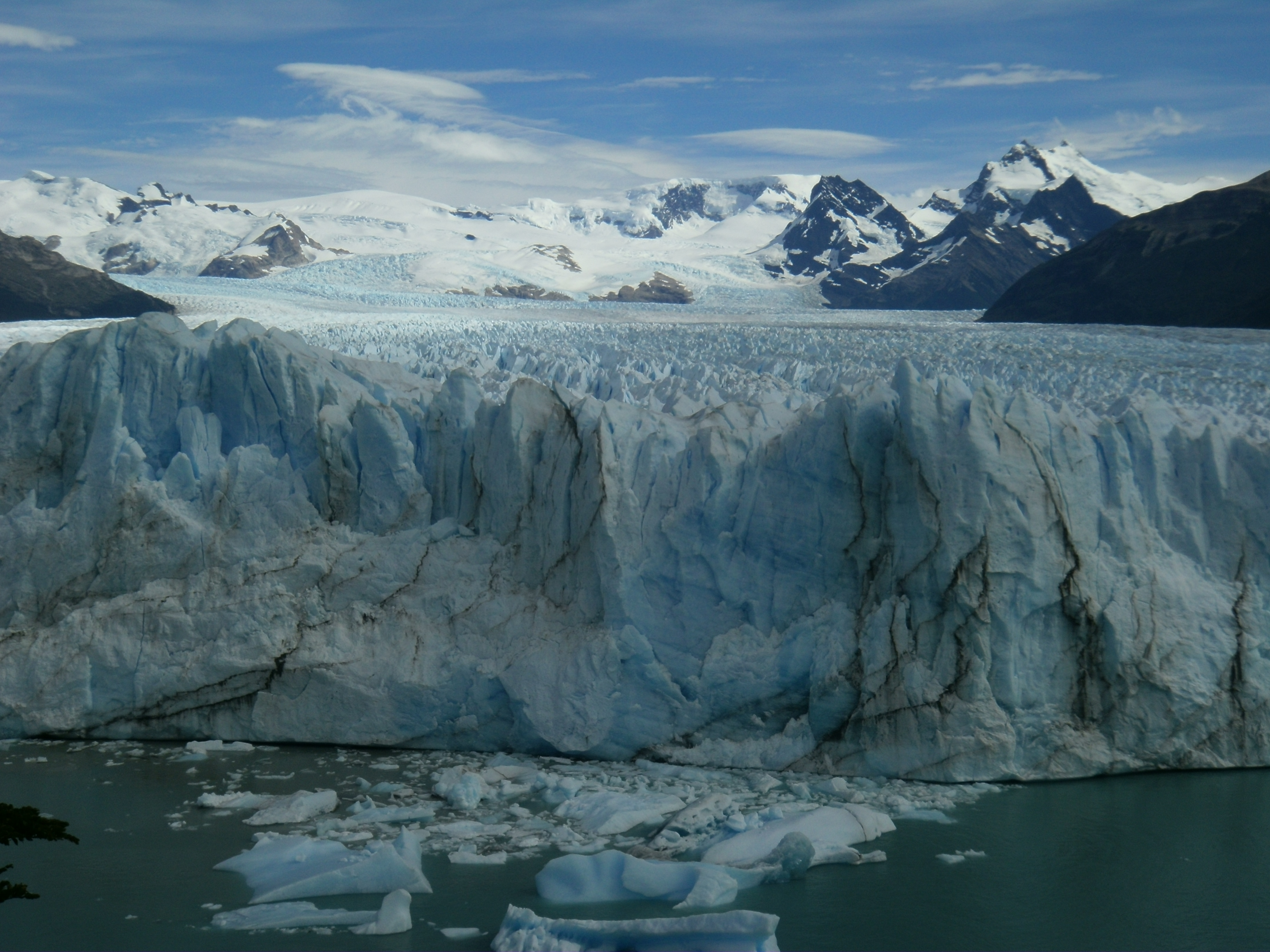 Der Perito Moreno ist einer der größten „Auslassgletscher“ der Welt und schiebt sich mit einer Geschwindigkeit von ungefähr drei Metern pro Tag in den Lago Argentino. Damit ist er der Sebastian Vettel unter den Formel-1-Gletschern, lassen wir mal die aktuellen Schwierigkeiten vom Red-Bull-Boliden außer acht. Der Perito Moreno bewegt sich derart konstant und zuverlässig, dass der Ort El Calafate, 80 Kilometer vom Gletscher entfernt, in einer völlig monozentrierten Abhängigkeit von diesem Naturspektakel steht. Zum Glück zieht sich der Perito Moreno nicht wie andere patagonische Gletscher zurück, hat also keine negative Massenbilanz. Hoffen wir mal für alle Touris und El Calafate, dass das trotz Klimaerwärmung so bleibt.