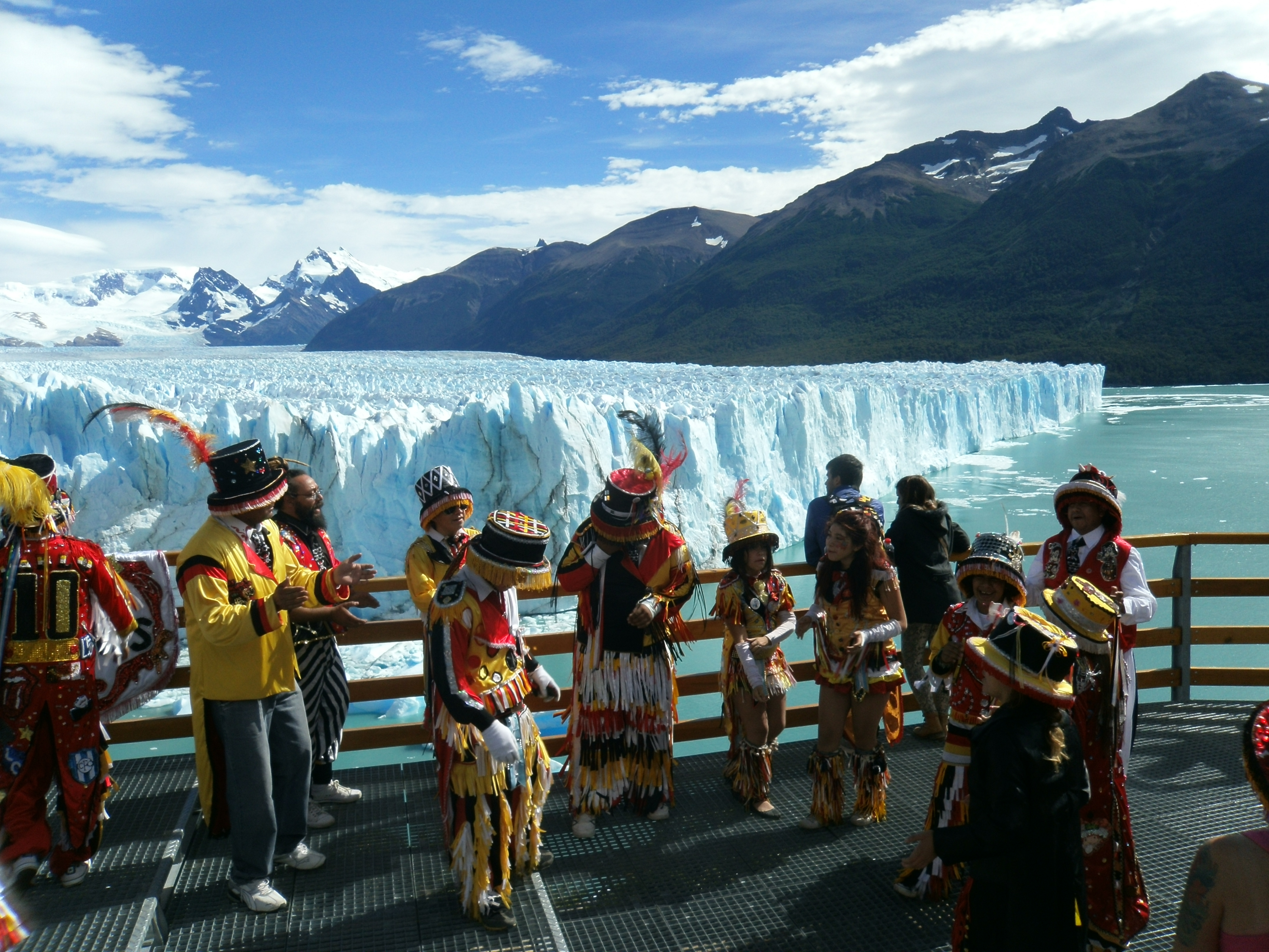 Apropos, eine kleine Karnevalsgruppe hat es am Rosenmontag auch zum Gletscher geschafft, nachdem ich sie am Tag vorher noch in El Calafate auf der Straße gesehen habe. Ja, Straßenkarneval in Patagonien, aber so richtig im ganz kleinen Stil!