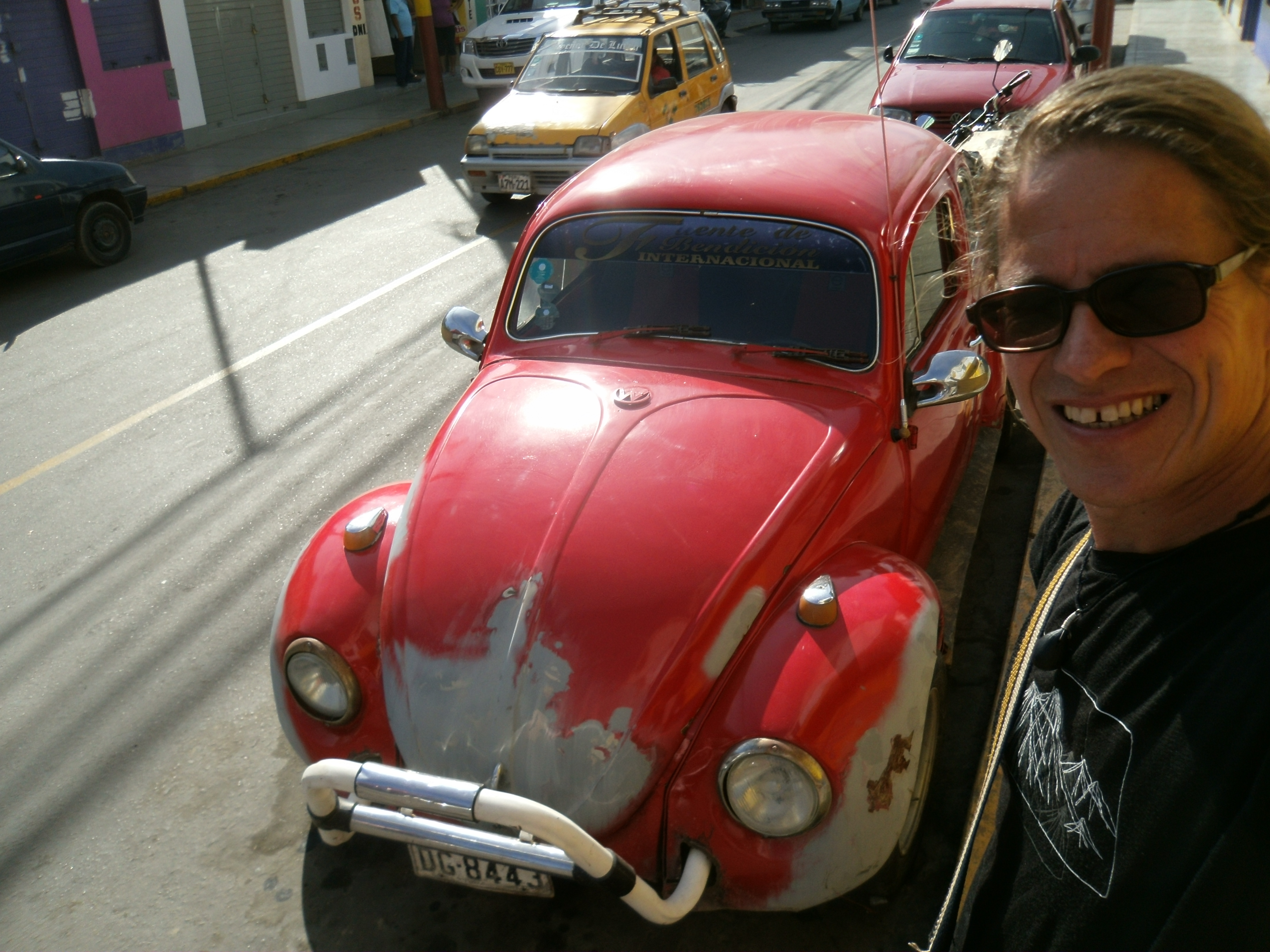 Meine ecuadorianische Reiseabschnittsgefährtin hat mir ihr Straßenspiel erklärt. Immer wenn man einen VW-Käfer auf der Straße sieht („Escarabajo“ auf Spanisch, aber in Ecuador nennt man ihn „Pichirilo“), zwickt man den Spielpartner in den Oberarm (möglichst immer wieder genau in die gleiche Stelle) und sagt „Me debes un chicle!“, was in etwa „Du schuldest mir eine Süßigkeit!“ bedeutet.