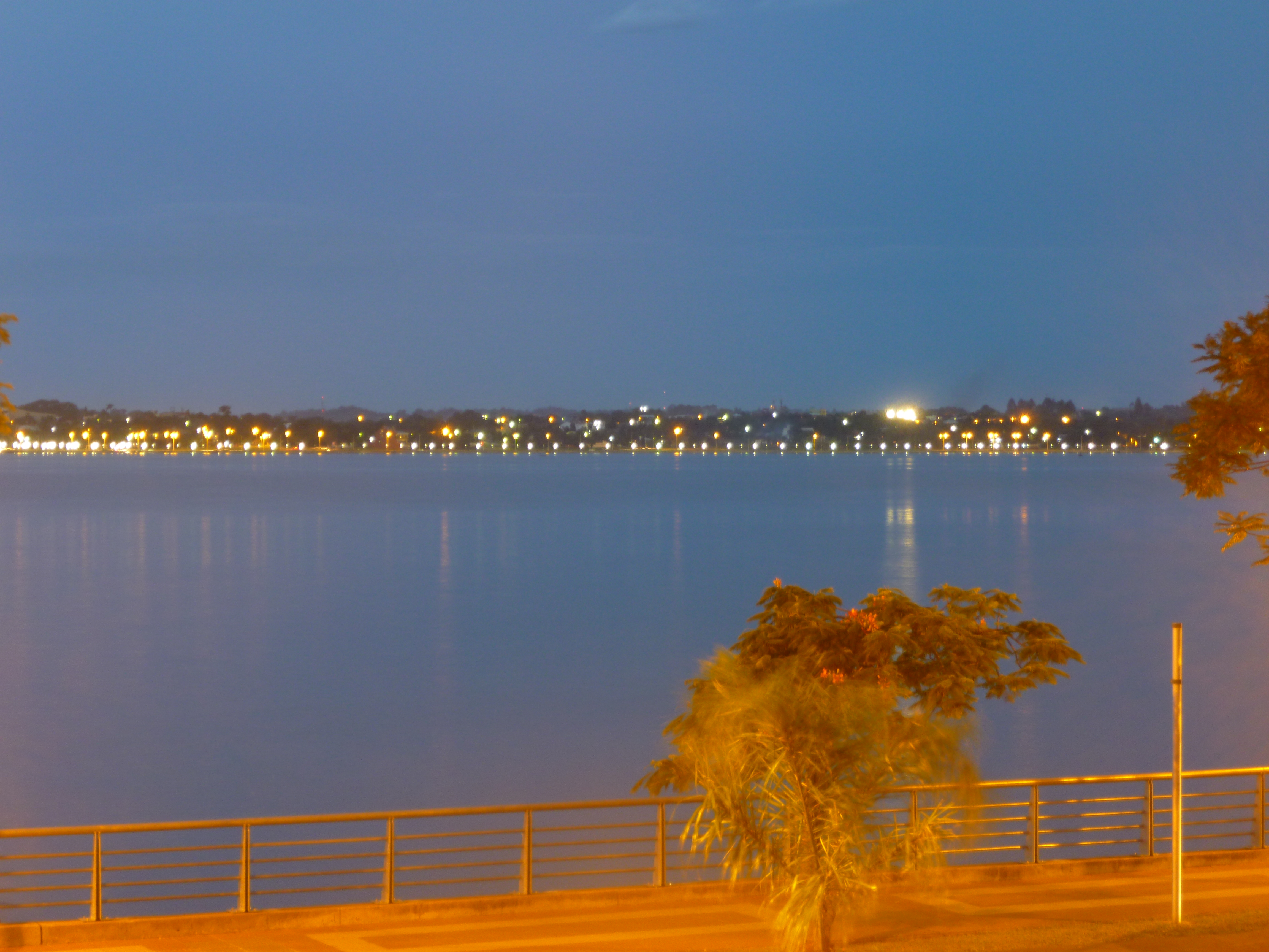 Ich will am Paraná entlang schlendern. Es ist 7 Uhr abends. Aber selbst an Schlendern ist nicht zu denken. Es ist FICKEN heiß! Und schwül und selbst am über einen Kilometer breiten Fluss nicht der Furz eines Lüftchens! Ich erkenne die Rettung. Da ist ein Licht! Das Licht einer Quilmes-Reklame an einem Restaurant. Kaltes Bier! Und es hilft! 1. Kühlung, 2. Schatten, 3. kein anstrengendes Schlendern mehr!