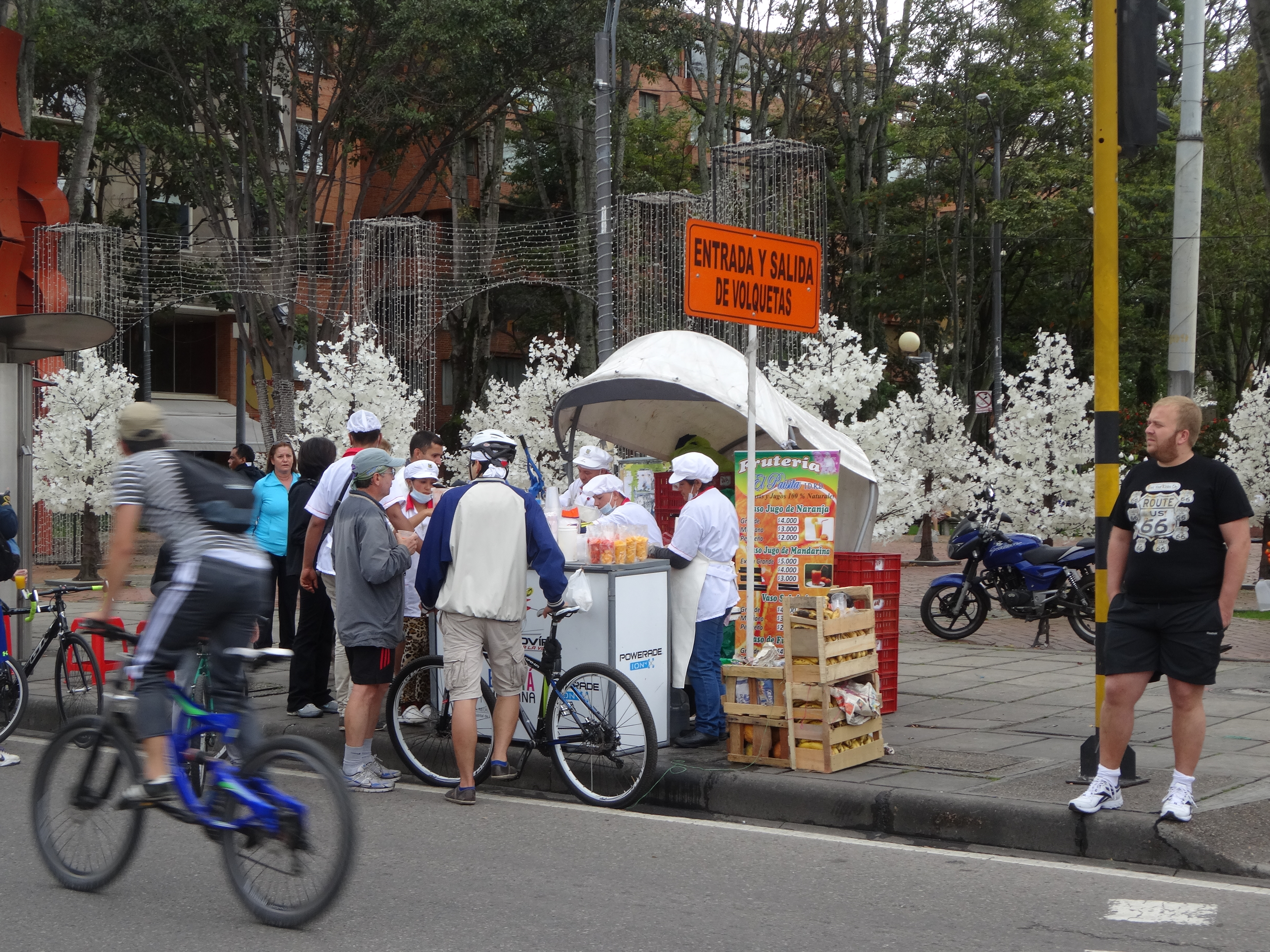 An Kreuzungen, an den Autos den Ciclovía queren, stehen Ordnungskräfte der Stadt, die den Verkehr regeln. Also alles bestens organisiert. Links und rechts der Straße gibt es Stände mit Essen und Trinken. Insgesamt ein lustiges Treiben und ein Spaß für die ganze Familie in der sonst so hektischen und chaotischen Metropole.
