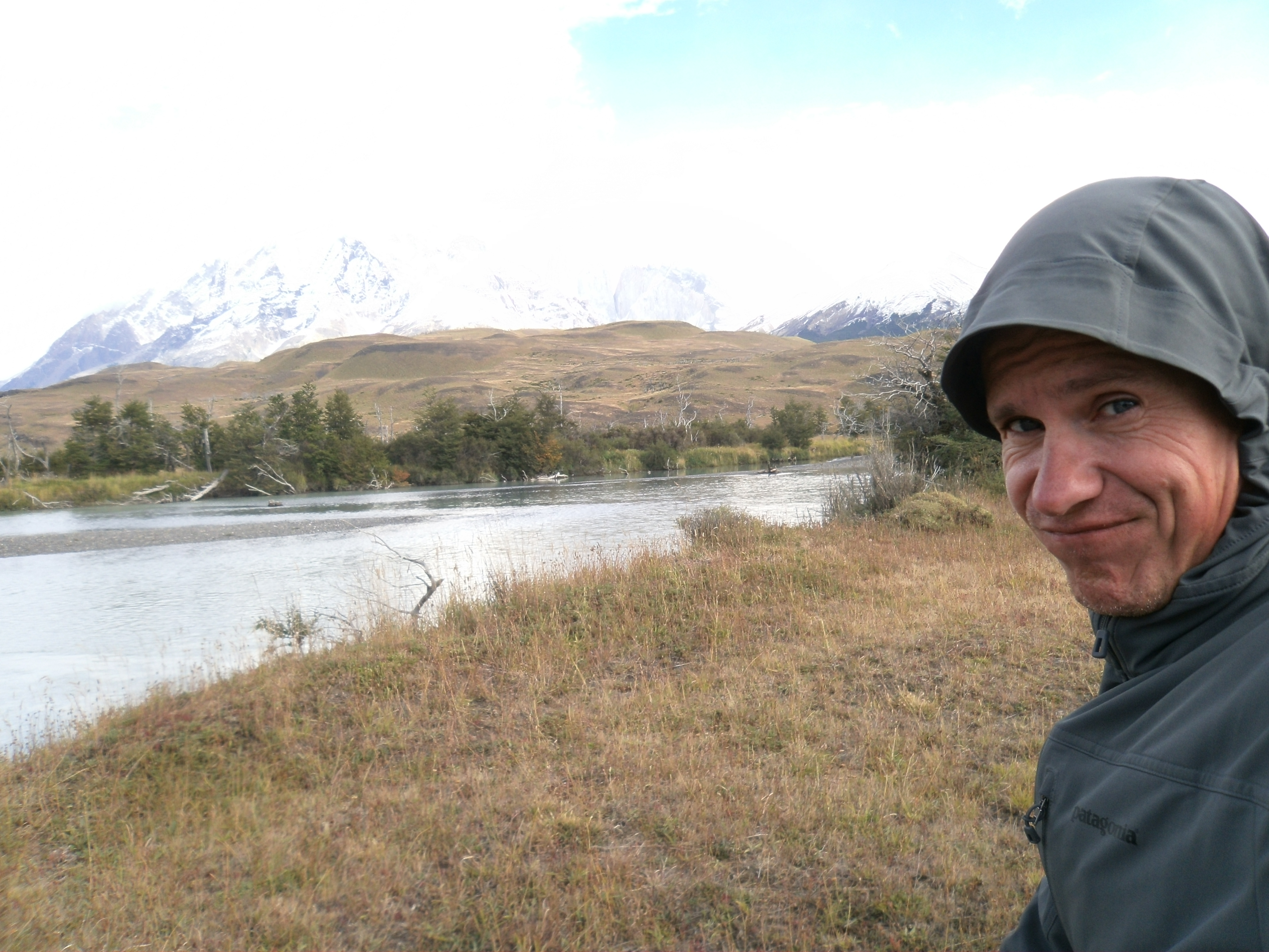 Da sitzt er nun, der Trottel, und schaut sich die Torres del Paine an. Und er sitzt am Fluss und schaut und sitzt und schaut – immerhin am Rio Paine. Aber warum wandert er nicht? Weil der Trottel am Eingang des Parkes, wo man sich registrieren lassen muss, seine Regenjacke plus Mütze im verfickten Bus vergessen hat. Er hat noch seinen Rucksack aus der Ladeluke rausgeholt und dann das gemacht, was Trottel am besten können: das Denken eingestellt.