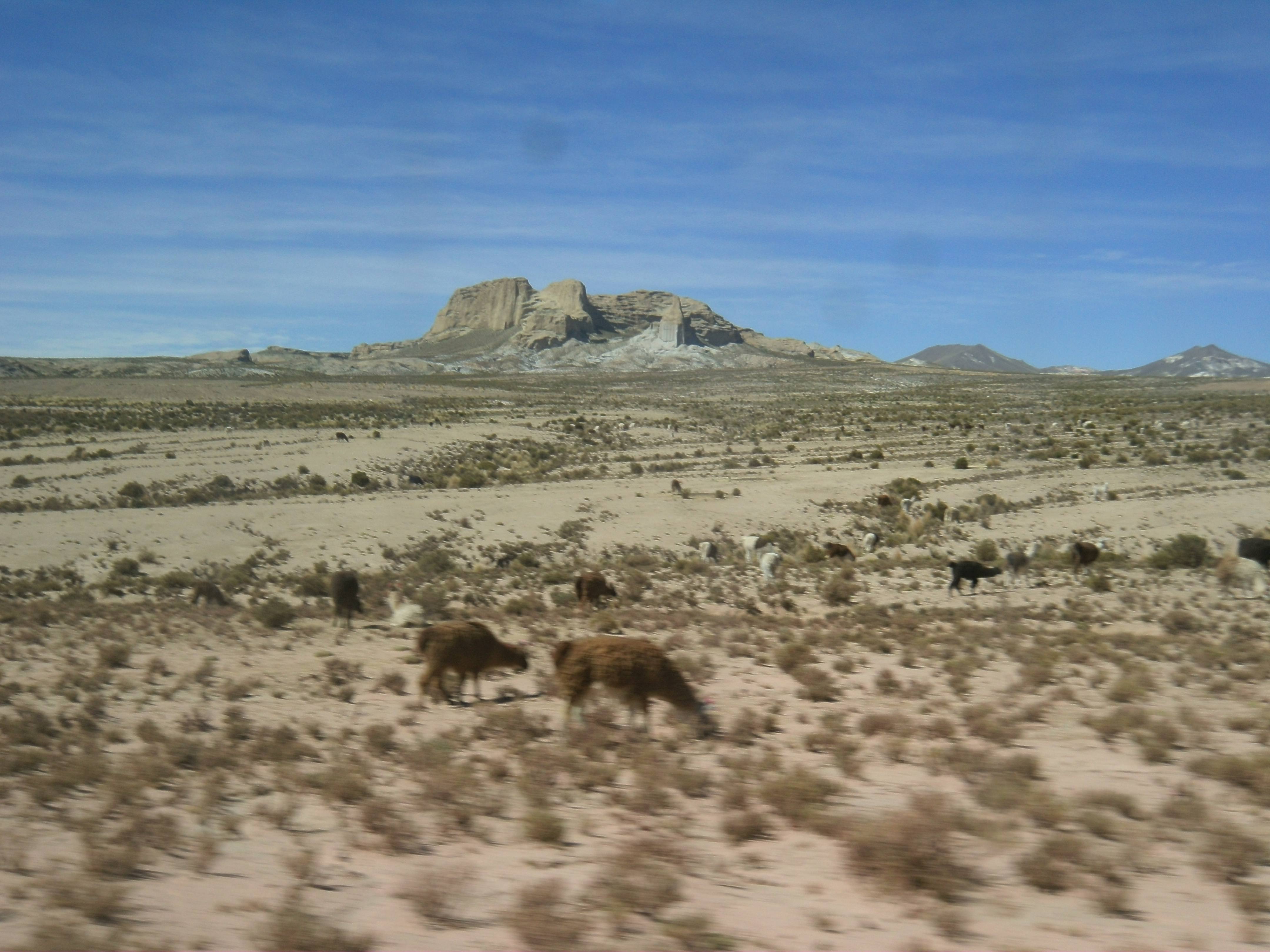 Die Fahrt geht mit halbstündiger Verspätung los. Aber seien wir nicht kleinlich. Ärgerlicher hingegen, dass die mir voraussagte Fahrtzeit von fünf Stunden schon allein deshalb nicht hinhauen kann, weil ich in Atocha den Bus wechseln muss, was eineinhalb Stunden Wartezeit bedeutet. So werden es letztlich acht Stunden. Aber nicht meckern, Freundchen. Denn die Landschaft kann einiges! Der Altiplano ist wirklich ganz großes Kino!